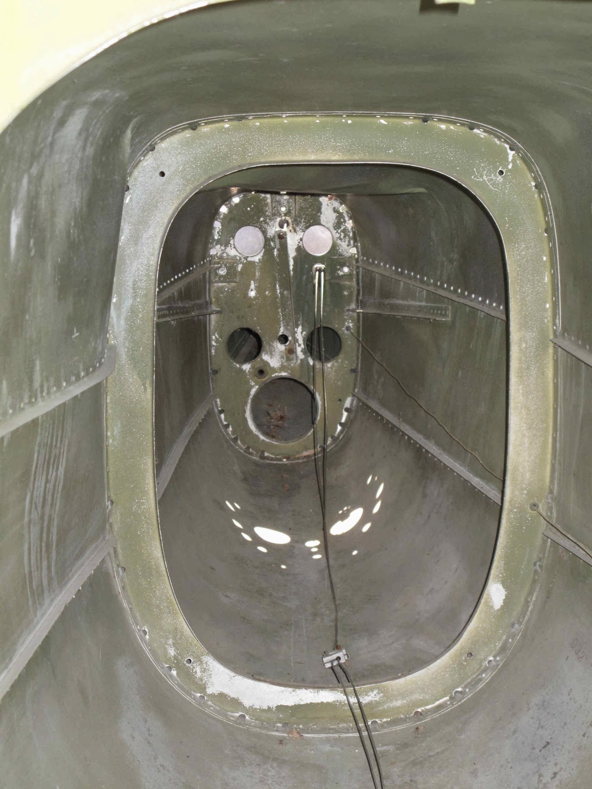 The fuselage is another story. It took the full weight of the snow on the aft top skin of the fuselage. The bent tent pole hit in the middle of it making a serious dent.